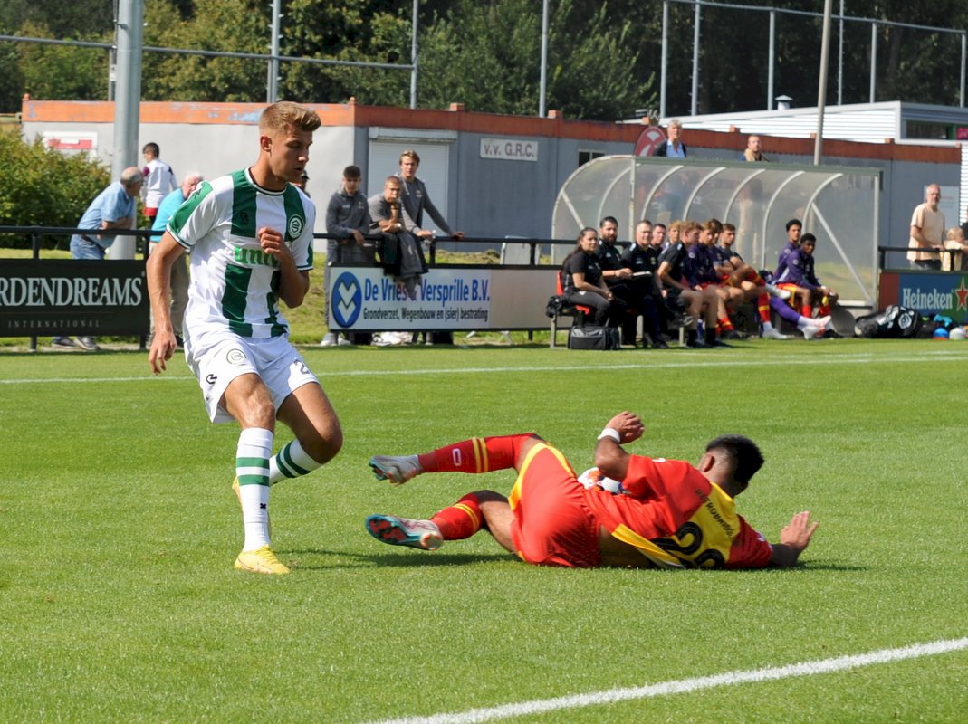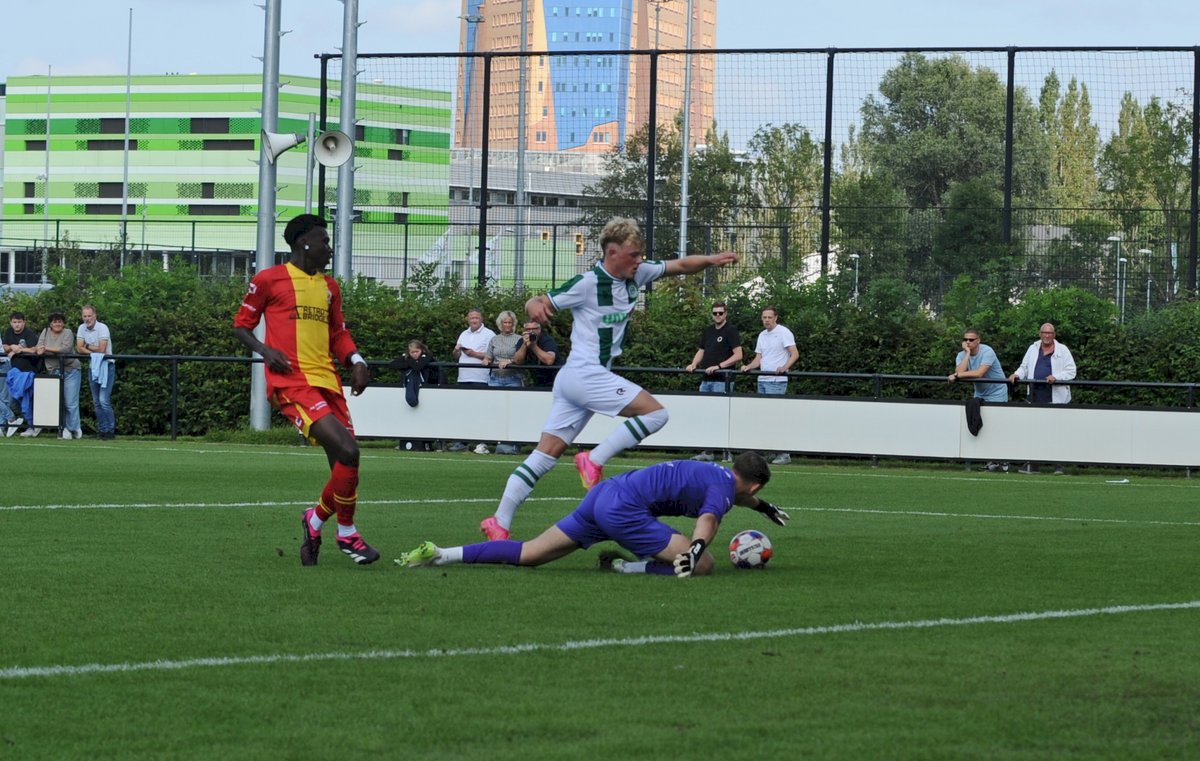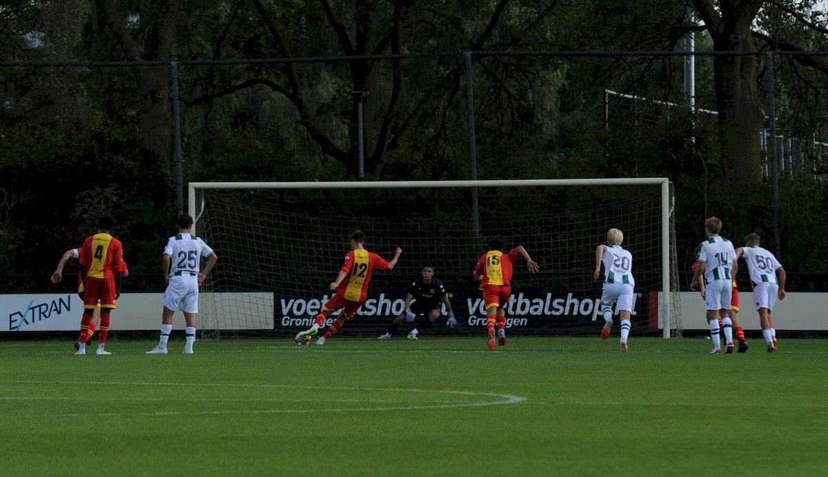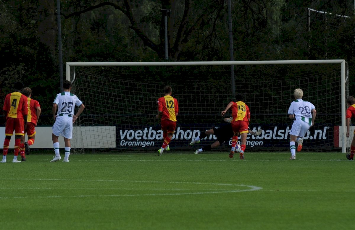 GA Eagles onder-21 ging net als vorige week onderuit bij FC Groningen O21. De plaatselijke FC bleek vorige week in de beker ook al de sterkste van de twee (4-1). Gisteren deden de Groningers er nog een schepje bovenop: 5-1. Boy Nijgh redde vanaf elf meter de eer voor de ploeg van Martijn Jongbloed. Hierbij een fotoreportage van die wedstrijd.