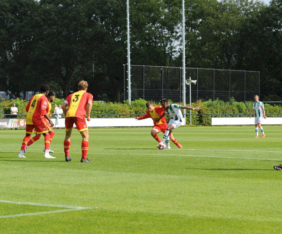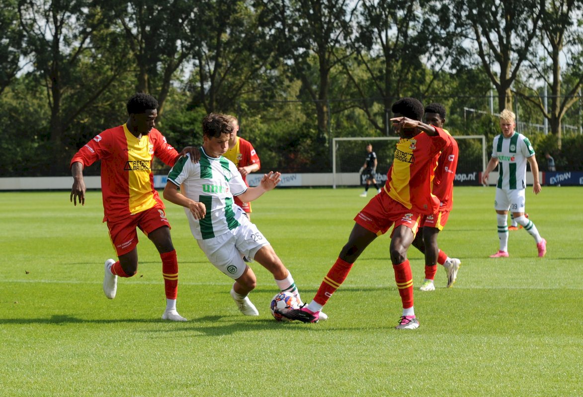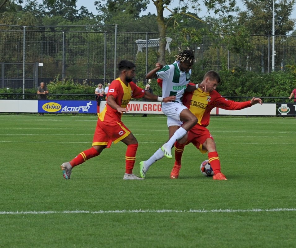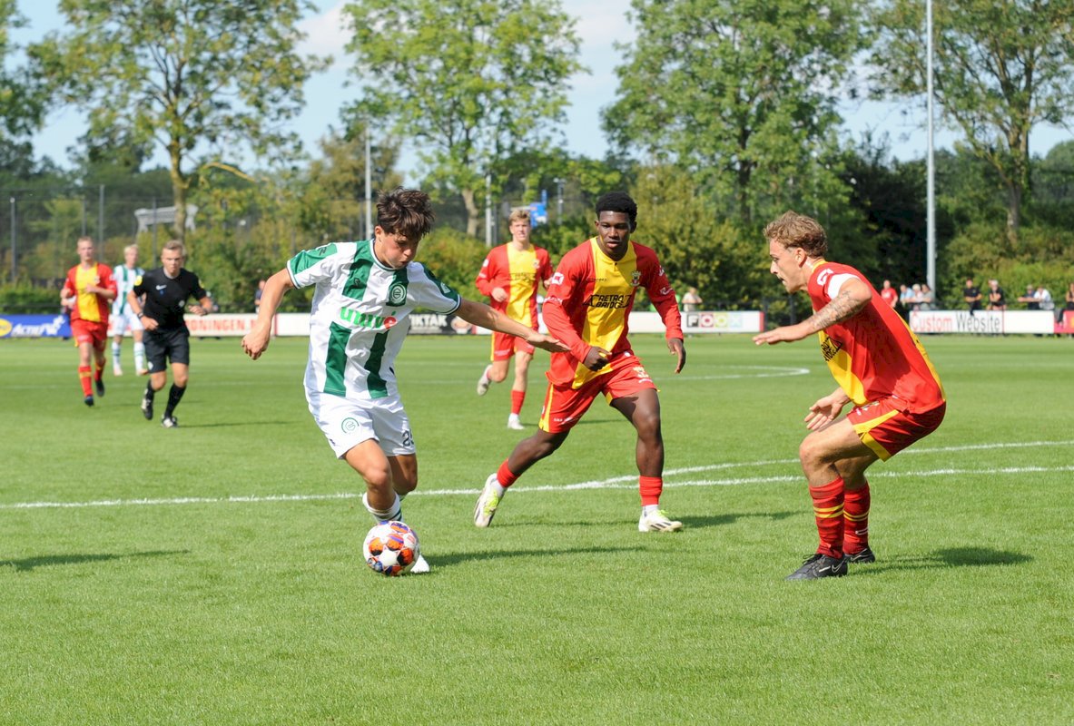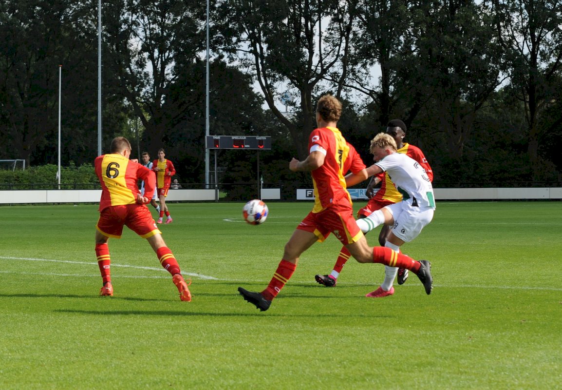 GA Eagles onder-21 ging net als vorige week onderuit bij FC Groningen O21. De plaatselijke FC bleek vorige week in de beker ook al de sterkste van de twee (4-1). Gisteren deden de Groningers er nog een schepje bovenop: 5-1. Boy Nijgh redde vanaf elf meter de eer voor de ploeg van Martijn Jongbloed. Hierbij een fotoreportage van die wedstrijd.